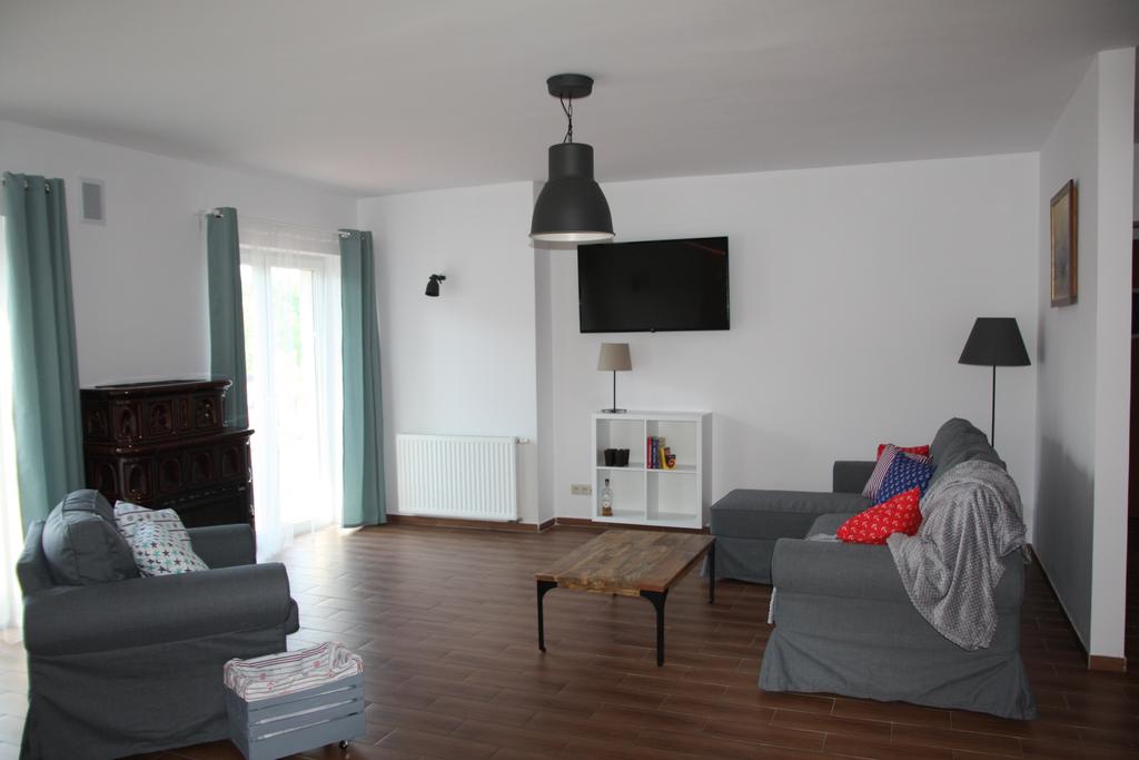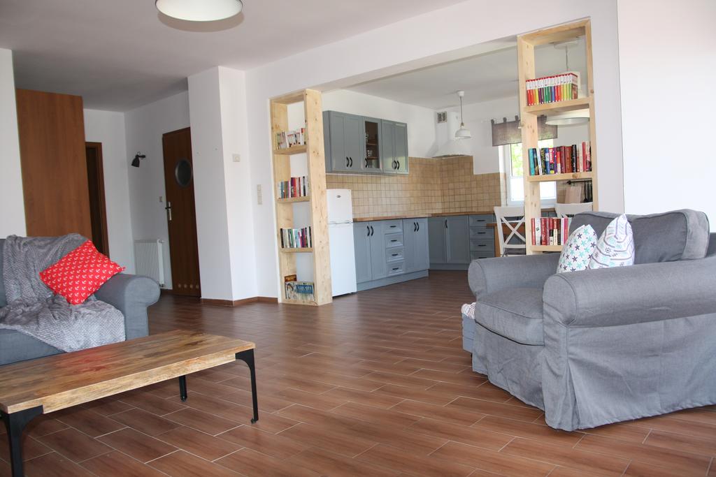 Apartament 100 m2 , 6-osobowy z kuchnią, salonem,dwoma sypialniami, dwoma łazienkami i tarasem.